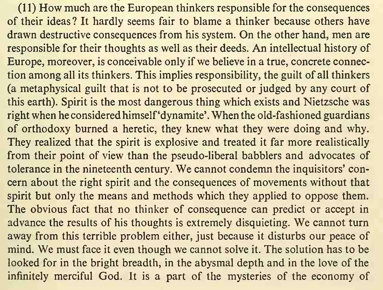 It should always be kept in mind that Heer was writing in the 1950s, just after Hitler, and he should be treated as an accurate witness of the culture of German speaking countries at that time. There is a polemical tone in his writing, inevitably. At that time the most known of Nietzsche's works is something like Will to Power, which wasn't actually what he wrote, but no one knew that. Cultural influence is a whole difference thing than what a thinker once "actually" thought. Tolkien was a die-hard Christian, but people think his works are pagan, and most of his readers proud themselves as pagans (cringe). Nazi was a seriously reprehensibe phenomena, and Nazi has many things to do with Romanticism. I don't really want to point out again I don't really devilise alt-right thinkers and conservative revolution, but it is equally true that when you write you need to be responsible, and the Romantics, and also Nietzsche, failed to do that.